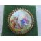 Ancienne grande broche ronde, bombé (Ø5 cm env), a décor peint de scène galante - Porcelaine Limoges - France (Vers 1920)
