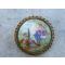 Authentique ancienne broche ronde et bombée de grande taille, en porcelaine de Limoge, datant de la premier moitié du XXéme siècle, vers 1920.