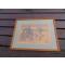 Gravure encadré dans un grand cadre en bois avec bordure intérieur de couleur bleu et vitre de protection en verre épais qui protège la gravure.