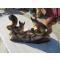 Beau sujet rare et atypique représentant deux écureuils, dans une végétation forestière.