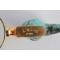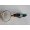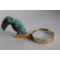Loupe de bureau en métal doré, manche surmonté d'un toucan en pierre semi-précieuse sculptée, par la princesse Ira von Fürstenberg signée et numérotée bon état, voir photos