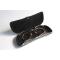 Ancienne paire de lunettes pour enfant Imitation écaille largeur entre branches : 10,5 à 14 cm d'époque 1930 + ancien étui à lunettes en métal peint noir brillant effet moiré, avec intérieur en velours noir État de neuf (pas de verres)