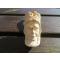 Ancienne pipe en écume de mer, de couleur crème avec un foyer à tabac qui représente un personnage a la longue chevelure, et vêtu d'un large bandana.