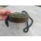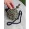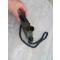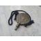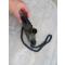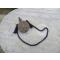 Poire a poudre avec ses deux anneaux d'attache, et lien en textile torsadé de couleur bleu.