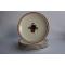 Six anciennes assiettes dessert art déco Jean LUCE (1895-1964) en faïence crème à décor d'un bouquet de fleurs en son centre et liseré moutarde. bon état