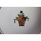 Six anciennes assiettes plates art déco Jean LUCE (1895-1964) en faïence crème à décor d'un bouquet de fleurs en son centre et liseré moutarde.