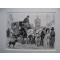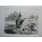 Anciens menus Gravure Eau Forte Robin Calèche Chevaux