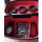 Coffret en cuir avec clé de verrouillage et sangle bandoulière comprenant :