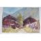 Aquarelle originale du village d'Oberwald, Alpes Suisse, canton du Valais