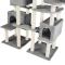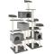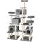 Dimensions totales (LxlxH) : environ 138 cm x 60 cm x 214 cm. Embase (Lxl) : environ 50 cm x 50 cm chacune. Cabanes (LxlxH) : environ 45 cm x 27 cm x 27 cm chacune. Entrée de la cabane : environ 20 cm x 20 cm. Plateformes (Lxl) : environ 30 cm x 30 cm x 7 cm chacune. Diamètre de la colonne : environ 6,5 cm Ø. Matériaux : Peluche. / MDF. / Tubes en carton. / sisal. Poids : environ 31,5 kg.