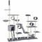 Dimensions totales (LxlxH): environ 218 cm x 70 cm x 234 cm à 261 cm. Embase (LxlxH) : environ 70 cm x 49 cm x 1,5 cm. Plaque de raccord (LxlxH) : environ 49 cm x 49 cm x 1,5 cm. Cabane pour chat (LxlxH) : environ 39,5 cm x 39,5 cm x 32 cm - Ouverture (lxH) : environ 20 cm x 27 cm. Diamètre du tunnel: environ 18 cm Ø. Diamètre de la plateforme de vue : environ 34 cm Ø. Diamètre de la niche : environ 36 cm Ø. Hamac (Lxl) : environ 39 cm x 33 cm. Petit griffoir en forme d'arc (lxH) : environ 44 cm x 23 cm. Escalier (lxH) : environ 18 cm x 62 cm. Diamètre du poteau sisal : environ 6,5 cm. Matériaux : Panneau aggloméré. / Sisal. / Tunnel en Carton. / Peluche. Poids : environ 32 kg.