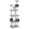 Arbre à chat avec griffoirs en sisal Gris clair 188 cmCet arbre à chat est le refuge idéal pour que vos chats puissent se gratter, grimper, se percher, se cacher et se reposer. Il donne à vos chats la possibilité de s'étirer et de faire de l'exercice, surtout pendant les mois d'hiver, lorsqu'ils sont enfermés à l'intérieur. Vos amis à fourrure peuvent aiguiser leurs griffes sur les poteaux à gratter enveloppés dans une corde de sisal, ce qui leur donne un bon endroit pour leurs instincts de grattage. De plus, ils se réjouiront aussi de se courir après tout en sautant de haut en bas de ce centre de jeu amusant. Lorsqu'ils auront assez de jeu, vos petits amis à fourrure adoreront se reposer sur les plates-formes supérieures où ils auront une meilleure vue. En outre, ils peuvent aussi se cacher dans la maison douillette pour faire une sieste, ou se reposer sur le confortable siège en peluche. Avec toutes ces caractéristiques divertissantes, cet arbre à chat deviendra certainement le lieu de rendez-vous préféré de vos amis à fourrure!