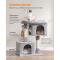 Il dispose de deux niches confortables : celle du haut, équipée de deux portes, offre une vue dégagée et un accès facile, tandis que celle du bas, plus calme et accessible, est idéale pour les chats âgés qui préfèrent rester près du sol.