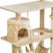 Ce beau griffoir très pratique plaira beaucoup à votre chat. L'arbre à chat offre de nombreuses possibilités pour jouer, se faire les griffes ou se cacher. En grimpant sur l'échelle, votre chat pourra atteindre la niche du premier étage. Juste à côté de la niche, il y a une corde de jeu. Toujours au premier étage, un trou permet d'accéder à un confortable hamac. La nacelle juste un peu plus haut est parfaite pour se prélasser. Le spacieux deuxième étage, où votre chat pourra s'étirer à son aise, mène à un tunnel surmonté d'une plateforme d'observation se trouvant à une hauteur de 141 cm. De là-haut, le chat pourra observer tranquillement tout ce qui se passe dans la pièce. Sur les poteaux résistants, revêtus de peluche et sisal, votre quadrupède pourra prendre soin de ses griffes. Tout en un : griffoir polyvalent, où les moindres désirs des chats deviennent réalité, avec un encombrement minimum.