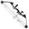 La livraison comprend un arc à poulies, un repose-flèche, un stabilisateur, un viseur et 6 flèches en fibre de verre de 30".