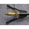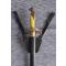 Très jolie dague de vénerie ,lame acier double goutte d eau de chaque côté,très performant,plateau double en bronze,poignée en ...je ne sais pas et bronze ciselée ,dorée , dos de poignée en bronze représentant un aigle aux yeux en sulfure, garde en bronze représentant deux aigles, chappe en laiton avec deux anneaux de port, sangles de port en cuir réglable pour ceinture . fourreau couvert en cuir .