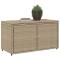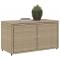 Armoire de rangement jardin beige 110x55x60,5 cm résine tresséeCette armoire de rangement de jardin est parfaite pour garder vos coussins de meubles d'extérieur, fournitures de jardinage, serviettes de piscine et d'autres articles organisés et facilement accessibles. Matériau durable : la résine tressée, également connue sous le nom de poly rotin, est un matériau synthétique solide et nécessitant peu d'entretien qui ressemble au rotin naturel. Il est léger, facile à nettoyer et couramment utilisé pour les meubles d'extérieur en raison de sa durabilité et de ses propriétés de résistance aux intempéries. Grand espace de rangement : cette armoire de rangement d'extérieur dispose d'un grand espace derrière les deux portes pour ranger vos outils de jardin, jouets de piscine, coussins d'extérieur et bien plus encore. Cadre robuste et stable : le cadre en acier enduit de poudre assure la solidité et la stabilité du meuble de jardin pour une utilisation quotidienne à l'extérieur. Conception pratique : les 2 portes sont équipées de boutons de porte en acier inoxydable et d'aimants pour faciliter l'ouverture et la fermeture. Le couvercle supérieur facilite le rangement et l'accès à vos articles. Attention Pour éviter qu'il ne soit renversé, ce produit doit être utilisé avec le dispositif de fixation au mur fourni. Bon à savoir : Pour que vos meubles d'extérieur restent beaux, nous vous recommandons de les protéger avec une housse imperméable.
