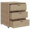 Armoire de rangement de jardin beige 55x59x69 cm résine tresséeCette armoire de rangement de jardin est parfaite pour garder vos coussins de meubles d'extérieur, fournitures de jardinage, serviettes de piscine et d'autres articles organisés et facilement accessibles. Matériau durable : la résine tressée, également connue sous le nom de poly rotin, est un matériau synthétique solide et nécessitant peu d'entretien qui ressemble au rotin naturel. Il est léger, facile à nettoyer et couramment utilisé pour les meubles d'extérieur en raison de sa durabilité et de ses propriétés de résistance aux intempéries.Grand espace de rangement : cette armoire de rangement d'extérieur dispose de 3 tiroirs pour ranger vos outils de jardin, jouets de piscine, coussins d'extérieur et bien plus encore.Cadre robuste et stable : le cadre en acier enduit de poudre assure la solidité et la stabilité du meuble de jardin pour une utilisation quotidienne à l'extérieur. AttentionPour éviter qu'il ne soit renversé, ce produit doit être utilisé avec le dispositif de fixation au mur fourni. Bon à savoir :Pour que vos meubles d'extérieur restent beaux, nous vous recommandons de les protéger avec une housse imperméable.