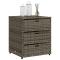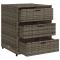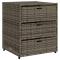 Armoire de rangement de jardin gris 55x59x69 cm résine tresséeCette armoire de rangement de jardin est parfaite pour garder vos coussins de meubles d'extérieur, fournitures de jardinage, serviettes de piscine et d'autres articles organisés et facilement accessibles. Matériau durable : la résine tressée, également connue sous le nom de poly rotin, est un matériau synthétique solide et nécessitant peu d'entretien qui ressemble au rotin naturel. Il est léger, facile à nettoyer et couramment utilisé pour les meubles d'extérieur en raison de sa durabilité et de ses propriétés de résistance aux intempéries.Grand espace de rangement : cette armoire de rangement d'extérieur dispose de 3 tiroirs pour ranger vos outils de jardin, jouets de piscine, coussins d'extérieur et bien plus encore.Cadre robuste et stable : le cadre en acier enduit de poudre assure la solidité et la stabilité du meuble de jardin pour une utilisation quotidienne à l'extérieur. AttentionPour éviter qu'il ne soit renversé, ce produit doit être utilisé avec le dispositif de fixation au mur fourni. Bon à savoir :Pour que vos meubles d'extérieur restent beaux, nous vous recommandons de les protéger avec une housse imperméable.
