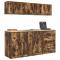 Armoires de garage 6 pcs chêne fumé bois d'ingénierieCes armoires de garage sont un excellent choix pour organiser tous vos outils et matériaux de bricolage dans le garage, le débarras ou l'atelier. Durable et résistant : cette armoire de garage est fabriquée en bois de pin durable et en bois d'ingénierie, assurant stabilité et robustesse pour une utilisation durable. Grand espace de rangement : cette armoire à outils vous permet de garder vos outils fréquemment utilisés à portée de main, ce qui facilite l'accès à tout ce dont vous avez besoin pour votre prochain projet. Surface de travail polyvalente : le plan de travail en bois offre une surface robuste pour diverses tâches, telles que les réparations, l'assemblage ou les projets de bricolage. Facile à entretenir : grâce à sa surface lisse, l'armoire se nettoie facilement à l'aide d'un chiffon humide et nécessite peu d'entretien. Nombreuses applications : cette armoire de rangement de garage offre beaucoup d'espace sécurisé, ce qui la rend idéale pour organiser des articles dans divers environnements tels que des garages, des bureaux, des buanderies, des garde-manger, des sous-sols ou des ateliers. Installation flexible de la porte : la porte du compartiment peut être installée à gauche ou à droite, selon vos habitudes et votre convenance. Bon à savoir : Les vis et les chevilles pour l'intérieur du mur ne sont pas incluses. Nous vous conseillons de trouver et d'utiliser des vis et des chevilles adaptées spécifiquement à vos murs. Si vous n'êtes pas sûr, vous pouvez consulter un professionnel. Veuillez lire et suivre chaque étape des instructions. Attention : Pour éviter qu'il ne bascule, ce produit doit être utilisé avec le dispositif de fixation murale fourni.