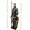 Cette armure, bien que inspirée par les modèles historiques, est fabriquée avec des matériaux modernes pour allier esthétique et durabilité. L'aluminium vieilli et noirci confère à l'armure une apparence antique tout en étant plus légère que les armures en acier traditionnelles.