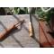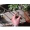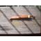 Puukko artisanal assez joli. Jamais servi,pas de rayures ni de chocs nulle part,comme neuf. Lame brute noire sur le plat avec un marquage bien en creux au talon un "T" et un "F" séparé par un grand bois de renne .Longueur de lame 10,5cm. épaisseur de lame 3mm. Longueur totale 20,6cm.sans compter la soie qui traverse tout le manche et dépasse rivée au pommeau .Erreur en creux de fabrication au début du manche . Joli fourreau ouvragé . Posez des questions ,regardez les photos retour refusé