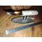 Artisanat d'art Finlandais, couteau droit Pukko, avec manche en bois de Renne figuratif sculpté représentant une truite, et son support en bois naturel, en bouleau Nordique, orné d'une scène de pêche à la mouche. Très beaux objets pour collectionneurs de couteaux, amateurs de pêche. Les photos font office de descriptif complémentaire.