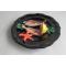 Assiette en barbotine, trompe l'oeil Poissons et crustacés