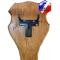 Attache blason pour accrocher un crâne entier de brocard sur blasons bois. Cet attache est réglable en fonction de la taille du chevreuil grâce à une pièce amovible. C'est une conception chasseprecision.com qui permet d'accrocher simplement les trophés de brocard entier.