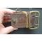 en bel état d'usage - cuir marron encore bien souple mais qui a tendance à craqueler un peu - un petit accident (manque de cuir sur 1/2 cm²) au milieu sur le haut (voir photo 7) - présence de la boucle en laiton d'accroche du porte sabre et aussi des 2 demi anneaux laiton