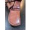 État : Excellente condition structurelle. Le cuir a été soigneusement nettoyé et nourri à l'huile de pied de bœuf dans le strict respect des méthodes traditionnelles d'armurerie. Il a retrouvé toute sa souplesse d'origine et arbore une magnifique patine fauve, sans aucun aspect "carton" ni craquelure profonde. Toutes les coutures d'époque sont fermes et rigoureusement intactes. Languette et téton de fermeture en laiton massif totalement fonctionnels. Les deux anneaux en "D" de brelage (pour port au ceinturon ou baudrier) sont présents et solides. Poche pour chargeur supplémentaire en parfait état.