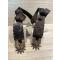 Très rare paire d'éperons type eurêka , modèle avec vagues sur les bords, introuvables en France, dans leur jus d origine manque un bouton pour accrocher les straps en cuir sinon en bon état à nettoyer, parfait pour les porter ou pour un display, ce type d éperons était peu honereux et très populaires chez les cowboys dans les années 1880
