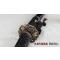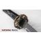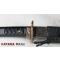 TSUKA: Le noyau Tsuka (poignée) est en bois et il est étroitement enveloppé sur une fausse peau rayée avec de la soie synthétique Ito. Le Fuchi (manche) et le pashira sont en alliage de zinc. Le Tang de l'épée est sécurisé par deux Mekugi (peg). Deux Menuki en cuivre (ornement) se trouvent de chaque côté du Tsuka.