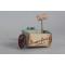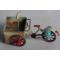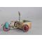 Automate mécanique triporteur Bonne année 1985 avec boite à musique Reuge signé : J.P. HARTMANN 84 La boite se remonte en tournant la pancarte, puis actionne une roue, ce qui fait avancer le triporteur tout en jouant de la musique bon état, fonctionne