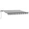 Auvent Rétractable Anthracite 350 x 200 cm tissuCe store rétractable moderne est parfait pour les jardins et terrasses, alliant chic et praticité. Sa silhouette épurée avec des motifs rayés crée une ambiance vibrante tout en bloquant le soleil brûlant de l'été. Style européen Parfait pour les espaces extérieurs modernes, ce store affiche un design stylé avec des lignes nettes, se fondant dans tous les aménagements de terrasse ou de patio. Sa fonctionnalité rétractable en fait un choix versatile pour profiter du soleil avec classe. Matériaux solides En tissu durable, il résiste aux rayons UV et à l'eau. Le cadre en aluminium ajoute à la robustesse tout en restant léger pour une installation facile. Flexibilité Le store peut s'étendre pour un maximum d'ombre ou se rétracter pour un rangement simple. Idéal pour ajuster la lumière selon vos envies et rendre votre espace encore plus confortable. Facile à entretenir Un simple coup de chiffon humide suffit pour le garder propre. Faisant face à tous les éléments, il est conçu pour durer sans trop d'effort d'entretien. Adaptabilité Que ce soit dans un jardin, sur une terrasse ou près d'une piscine, ce store sait s'adapter aux différents espaces extérieurs. Il est parfait pour des soirées entre amis ou pour se relaxer tranquillement. Danger ! Ressort fort lors de l'ouverture. Ne retirez pas cette corde si vous n'avez pas terminé toutes les étapes d'assemblage avec tous les boulons fixés et l'article fixé au mur ! Avertissement! Faire attention en desserrant les bras, car ils sont sous tension ! Un relâchement soudain du bras d'un auvent à bras articulés peut provoquer des blessures. Avertissement : Les instructions d'utilisation doivent être lues avant d'utiliser le produit. Avertissement: Le fonctionnement dans des conditions de gel peut endommager le produit. Utilisation externe dans les bâtiments et autres travaux de construction. Ne laissez pas les enfants jouer avec le dispositif de commande du store. Gardez la télécommande hors de portée des enfants.