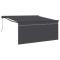 Auvent Rétractable Anthracite 350 x 250 cmCet auvent rétractable moderne est le truc idéal pour mettre de l'ombre dans n'importe quel jardin ou sur une terrasse. Avec son design minimaliste et classe, il assure une bonne fonctionnalité sans perdre en style. Avec des dimensions de 350 x 300 cm, il offre une grande zone d'ombre, parfaite pour profiter sans souci des rassemblements en extérieur. Ses lignes simples s'harmonisent parfaitement avec les architectures modernes, pour un look chic et discret. Cet auvent est parfait pour les journées ensoleillées, alliant style et utilité pour garder tout le monde à l'abri. Composition du Matériau : Cet auvent est en polyester 100% de haute qualité, super durable et parfaitement résistante aux UV, donc il garde sa couleur anthracite même après une utilisation prolongée. C'est parfait pour l'extérieur. Construction du Cadre : Un cadre en aluminium bien conçu soutient la structure, évitant la corrosion. Le cadre est là pour résister aux intempéries, ce qui lui assure une bonne tenue même par temps venteux. Mécanisme Opérationnel : Le mécanisme rétractable manuel permet d'ajuster facilement l'auvent selon vos envies. Il peut s'étendre ou se rétracter pour modifier la couverture selon le moment de la journée ou la météo. Fonctionnalités de Protection Contre les Intempéries : Fabriqué pour être résistant à la décoloration et déperlant, cet auvent garde les meubles en dessous protégés contre la pluie ou un soleil trop fort. Utilisation Résidentielle et Commerciale : Cet auvent est parfait pour les jardins, terrasses et patios, répondant aux besoins des ménages et commerces, c'est une solution versatile pour ombre et confort. Danger ! Ressort fort lors de l'ouverture. Ne retirez pas cette corde si vous n'avez pas terminé toutes les étapes d'assemblage avec tous les boulons fixés et l'article fixé au mur ! Avertissement! Faire attention en desserrant les bras, car ils sont sous tension ! Un relâchement soudain du bras d'un auvent à bras articulés peut provoquer des blessures. Avertissement : Les instructions d'utilisation doivent être lues avant d'utiliser le produit. Avertissement: Le fonctionnement dans des conditions de gel peut endommager le produit. Utilisation externe dans les bâtiments et autres travaux de construction.