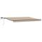 Auvent Rétractable Beige 400 ×300 cm tissuCet auvent rétractable, c'est le combo idéal entre style et praticité, offrant une super solution d'ombrage pour tes espaces extérieurs. Avec ses lignes épurées et son look minimaliste, il est parfait pour les balcons ou les terrasses, créant un lieu idéal pour se détendre. Il est fait pour résister aux intempéries, et son mécanisme manuel robuste te permet de le dérouler ou de le ranger facilement en fonction de tes besoins en ombre. Parfait pour des moments chill ou une soirée tranquille dehors, il crée vraiment une super ambiance avec ses lumières intégrées. Matériaux Résistants aux Intempéries Fait en tissu résistant aux UV et à l'eau, cet auvent est assez solide pour résister à tous les types de temps. Il ne se décolorera pas au soleil, donc il garde son allure longtemps. Éclairage LED Intégré Avec des bandes LED flexibles, l'auvent éclaire ton extérieur, créant une atmosphère sympa après la nuit tombée. Parfait pour une soirée tranquille ou pour recevoir des amis. Mécanisme de Fonctionnement Manuel C'est simple à ajuster ; il suffit de le tirer ou de le ranger selon tes besoins. Pas de gadgets compliqués juste un ombrage flexible et facile. Attrait Esthétique Moderne Le design contemporain met l'accent sur la simplicité et la praticité. La finition en poudre apporte une touche de classe tout en le protégeant des intempéries. Entretien et Maintenance Faciles Le garder propre est super easy juste un coup de chiffon humide, pas de produits chimiques agressifs. Traite le tissu avec un spray imperméabilisant avant une forte pluie pour le garder encore plus longtemps. Le mode d'emploi doit être lu avant le montage et l'utilisation du produit. Conservez ce manuel pour pouvoir vous y référer ultérieurement. Ce produit est destiné à être utilisé à l'extérieur et à l'intérieur comme protection solaire ou décoration uniquement. Ne l'utilisez jamais à d'autres fins et ne le modifiez pas. Ne l'utilisez pas dans des endroits soumis à des vibrations, à des impulsions ou à des températures élevées, comme les murs situés à proximité d'un four. Portez toujours un équipement de protection individuelle approprié lorsque vous montez et réglez le store. Il y a un risque de chute lors de travaux en hauteur, utilisez une protection anti-chute appropriée. Soyez prudent lors de l'installation, des risques d'écrasement et de cisaillement peuvent exister. N'enlevez PAS les bandes de sécurité. Ils ne peuvent être enlevés qu'une fois que toutes les étapes de l'assemblage sont terminées, que tous les boulons sont fixés et que l'article est fixé au mur. Des blessures graves peuvent résulter d'un retrait prématuré de l'emballage. Ce produit et ses pièces de fixation ne conviennent que pour une installation sur un mur en ciment ordinaire ou sur une maçonnerie stable et non enduite. Si le mur/la maçonnerie présente des fissures, vous devez consulter un professionnel. Si votre bâtiment possède une enveloppe extérieure (telle qu'une isolation, un double mur en briques ou un parement en briques), l'installation doit être effectuée par un professionnel. Ne l'installez jamais dans des endroits élevés et venteux, car le parasol pourrait tomber et blesser des personnes. N'installez pas le store si des pièces endommagées ou manquantes sont trouvées. Le store extérieur doit être rétracté si la vitesse du vent est supérieure à 28km/h. Avant d'ouvrir le store, assurez-vous que tous les supports sont solidement fixés aux montants du mur et que tous les boulons sont correctement serrés. FERMEZ TOUJOURS le store en cas de vent fort ou de bourrasque, de pluie et lorsqu'il n'est pas utilisé. Le non-respect de cette consigne peut entraîner des blessures corporelles et/ou des dommages matériels. De plus, les bras d'extension sont soumis à une forte tension et peuvent causer des dommages ou des blessures graves. Les enfants doivent être surveillés pour s'assurer qu'ils ne jouent pas avec l'appareil. N'utilisez pas l'appareil si une réparation ou un réglage est nécessaire. N'utilisez pas le store lorsque des travaux d'entretien, tels que le nettoyage des vitres, sont effectués à proximité. L'utilisation dans des conditions de gel peut endommager le store. Ne placez pas d'objets lourds sur l'armature, car ils pourraient tomber et causer des dommages. Des fixations trop serrées ou trop lâches peuvent endommager le produit ou être dangereuses pour les personnes. Attention : La toile ne doit pas être enfoncée pendant le fonctionnement, sinon l'eau s'y accumulera. Veuillez ne pas décoller et laver le tissu. Si vous devez remplacer le tissu, demandez l'aide d'experts. Faites attention lorsque vous actionnez le déverrouillage manuel alors que le store extérieur est rétracté, car il peut tomber rapidement si les ressorts sont faibles ou cassés. Danger ! Ressort fort lors de l'ouverture. Ne retirez pas cette corde si vous n'avez pas terminé toutes les étapes d'assemblage avec tous les boulons fixés et l'article fixé au mur ! Avertissement! Faire attention en desserrant les bras, car ils sont sous tension ! Un relâchement soudain du bras d'un auvent à bras articulés peut provoquer des blessures. Avertissement : Les instructions d'utilisation doivent être lues avant d'utiliser le produit. Avertissement: Le fonctionnement dans des conditions de gel peut endommager le produit. Utilisation externe dans les bâtiments et autres travaux de construction.