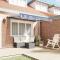 Auvent Rétractable Bleu 250 x 200 cm tissuCe store rétractable moderne est parfait pour les jardins et terrasses, alliant chic et praticité. Sa silhouette épurée avec des motifs rayés crée une ambiance vibrante tout en bloquant le soleil brûlant de l'été. Style européen Parfait pour les espaces extérieurs modernes, ce store affiche un design stylé avec des lignes nettes, se fondant dans tous les aménagements de terrasse ou de patio. Sa fonctionnalité rétractable en fait un choix versatile pour profiter du soleil avec classe. Matériaux solides En tissu durable, il résiste aux rayons UV et à l'eau. Le cadre en aluminium ajoute à la robustesse tout en restant léger pour une installation facile. Flexibilité Le store peut s'étendre pour un maximum d'ombre ou se rétracter pour un rangement simple. Idéal pour ajuster la lumière selon vos envies et rendre votre espace encore plus confortable. Facile à entretenir Un simple coup de chiffon humide suffit pour le garder propre. Faisant face à tous les éléments, il est conçu pour durer sans trop d'effort d'entretien. Adaptabilité Que ce soit dans un jardin, sur une terrasse ou près d'une piscine, ce store sait s'adapter aux différents espaces extérieurs. Il est parfait pour des soirées entre amis ou pour se relaxer tranquillement. Danger ! Ressort fort lors de l'ouverture. Ne retirez pas cette corde si vous n'avez pas terminé toutes les étapes d'assemblage avec tous les boulons fixés et l'article fixé au mur ! Avertissement! Faire attention en desserrant les bras, car ils sont sous tension ! Un relâchement soudain du bras d'un auvent à bras articulés peut provoquer des blessures. Avertissement : Les instructions d'utilisation doivent être lues avant d'utiliser le produit. Avertissement: Le fonctionnement dans des conditions de gel peut endommager le produit. Utilisation externe dans les bâtiments et autres travaux de construction. Ne laissez pas les enfants jouer avec le dispositif de commande du store. Gardez la télécommande hors de portée des enfants.