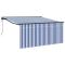 Auvent Rétractable Bleu et Blanc 350 x 250 cmCe auvent rétractable est une vraie innovation pour profiter de l'ombre dehors. Son design est simple, avec des lignes épurées qui se marient bien aux jardins et terrasses. Il combine style et pratique, vous offrant l'ombre qu'il vous faut pour passer de bons moments en extérieur. Matériaux de qualité : Fabriqué en polyester et aluminium robustes, cet auvent vous assure durabilité et protection efficace contre les UV. Il résiste bien à la décoloration, ce qui garantit un look cool tout au long de l'année, peu importe le temps. Composants inclus : Cet auvent arrive avec tout ce qu'il faut : un cadre, un tissu solide et un store. Vous aurez même une télécommande pour ajuster tudo ça facilement ! Chaque élément a été pensé pour être simple et efficace dans votre extérieur. Design pratique : L'auvent se rétracte, offrant une ombre personnalisable selon vos besoins. Avec des matériaux anti-UV et résistant à l'eau, il est fiable à toute saison. Utilisation variée : Que ce soit pour un jardin tranquille ou une terrasse animée, cet auvent s'adapte à tout. Son look moderne se marie avec toutes les architectures, parfait pour les cafés, les barbecues en famille ou le bureau en extérieur. Entretien facile : Pour garder l'auvent au top, il suffit de le nettoyer avec un détergent doux de temps en temps. Pensez à vérifier les pièces mobiles pour un fonctionnement optimal. Moins d'entretien = plus de longévité et toujours aussi joli ! Danger ! Ressort fort lors de l'ouverture. Ne retirez pas cette corde si vous n'avez pas terminé toutes les étapes d'assemblage avec tous les boulons fixés et l'article fixé au mur ! Avertissement! Faire attention en desserrant les bras, car ils sont sous tension ! Un relâchement soudain du bras d'un auvent à bras articulés peut provoquer des blessures. Avertissement : Les instructions d'utilisation doivent être lues avant d'utiliser le produit. Avertissement: Le fonctionnement dans des conditions de gel peut endommager le produit. Utilisation externe dans les bâtiments et autres travaux de construction. Ne laissez pas les enfants jouer avec le dispositif de commande du store. Gardez la télécommande hors de portée des enfants.