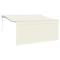 Auvent Rétractable Crème 300 x 200 cm Polyester et AluminiumCe store extérieur rétractable est l'ajout parfait pour ton jardin ou balcon. Il a un style moderne avec des lignes épurées et est super pratique, te créant un coin ombragé pour te détendre quand il fait beau. Avec sa structure solide et son tissu élégant, il a l'air simple et minimal tout en te protégeant bien. Que tu cherches un endroit tranquille pour te poser ou un espace pour recevoir tes potes, ce store aide à créer une ambiance relaxante en extérieur. En plus, comme il est rétractable, tu peux contrôler facilement la quantité de soleil qui entre. Matériau du tissu : Le store est fabriqué avec un tissu robuste et résistant aux UV, offrant à la fois style et protection contre les rayons du soleil. Sa texture lisse le garde toujours classe et il est assez durable pour affronter différentes conditions météo. Cadre en aluminium : Un cadre en aluminium léger mais solide supporte le store. Son design simple se marie facilement avec des styles modernes tout en offrant une bonne stabilité tout au long de l'année. Design fonctionnel : La fonction rétractable te permet d'ajuster l'ombre selon la position du soleil, pour rester à l'aise toute la journée. Il est simple à déplier ou à rétracter, créant un espace ombragé parfait pour se relaxer ou passer du temps avec des amis. Utilisation extérieure : Idéal pour balcons et terrasses, ce store améliore ton espace extérieur en créant un refuge confortable pendant l'été grâce à ses caractéristiques résistantes aux UV et à l'eau. Son look moderne va avec tous tes meubles d'extérieur, rendant ton espace super joli. Entretien : Garde-le en bon état en le nettoyant à l'eau tiède et en évitant les produits chimiques trop forts. Pense à le couvrir quand tu ne l'utilises pas pour éviter l'usure, ainsi il restera beau et accueillant toute l'année. Danger ! Ressort fort lors de l'ouverture. Ne retirez pas cette corde si vous n'avez pas terminé toutes les étapes d'assemblage avec tous les boulons fixés et l'article fixé au mur ! Avertissement! Faire attention en desserrant les bras, car ils sont sous tension ! Un relâchement soudain du bras d'un auvent à bras articulés peut provoquer des blessures. Avertissement : Les instructions d'utilisation doivent être lues avant d'utiliser le produit. Avertissement: Le fonctionnement dans des conditions de gel peut endommager le produit. Utilisation externe dans les bâtiments et autres travaux de construction.