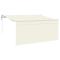 Auvent Rétractable Crème 300 x 200 cm Polyester et AluminiumCe store rétractable est la solution idéale pour rendre tes espaces extérieurs à la fois élégants et pratiques. Avec une touche moderne, il est parfait pour ceux qui aiment profiter de leur jardin ou terrasse tout en restant protégés des éléments. Facile à intégrer dans différents décors, sa couleur crème chic s'adapte à tout, créant une ambiance classe et tranquille. Avec des composants alliant esthétique et design, il transforme sans effort tes espaces, rendant la vie en extérieur vraiment agréable. Fabrication polyester et aluminium Fabriqué avec un mélange solide de polyester et aluminium, ce store résiste bien aux UV et à la décoloration. Cette combinaison garantit sa durabilité et son look à travers le temps, super pour profiter des après-midis au soleil sans souci. Composants ajustables intégrés Avec la télécommande incluse, tu peux régler facilement la position du store. Cette fonctionnalité rend l'utilisation super pratique, te permettant de contrôler l'ombre et la lumière selon tes besoins, parfait pour les changements de soleil. Fonctionnalités résistantes aux intempéries Conçu pour un usage extérieur, le tissu imperméable du store peut supporter une légère pluie. Sa construction robuste fait face au vent, ce qui en fait un bon choix pour différents climats tout en prolongeant son utilisation durant toutes les saisons. Design moderne et élégant Avec son allure épurée, ce store ajoute une touche chic à ta terrasse ou ton jardin. Il s'intègre à merveille dans des espaces contemporains, alliant fonctionnalité et style pour une ambiance accueillante toute l'année. Entretien et soins simples Pour une utilisation prolongée, le design du store est conçu pour un entretien facile. Un nettoyage occasionnel avec des produits doux suffit pour le garder propre et beau, permettant ainsi une utilisation durable dans ton jardin. Danger ! Ressort fort lors de l'ouverture. Ne retirez pas cette corde si vous n'avez pas terminé toutes les étapes d'assemblage avec tous les boulons fixés et l'article fixé au mur ! Avertissement! Faire attention en desserrant les bras, car ils sont sous tension ! Un relâchement soudain du bras d'un auvent à bras articulés peut provoquer des blessures. Avertissement : Les instructions d'utilisation doivent être lues avant d'utiliser le produit. Avertissement: Le fonctionnement dans des conditions de gel peut endommager le produit. Utilisation externe dans les bâtiments et autres travaux de construction. Ne laissez pas les enfants jouer avec le dispositif de commande du store. Gardez la télécommande hors de portée des enfants.