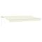Auvent Rétractable Crème 400 x 200 cm tissuCe store rétractable moderne est parfait pour les jardins et terrasses, alliant chic et praticité. Sa silhouette épurée avec des motifs rayés crée une ambiance vibrante tout en bloquant le soleil brûlant de l'été. Style européen Parfait pour les espaces extérieurs modernes, ce store affiche un design stylé avec des lignes nettes, se fondant dans tous les aménagements de terrasse ou de patio. Sa fonctionnalité rétractable en fait un choix versatile pour profiter du soleil avec classe. Matériaux solides En tissu durable, il résiste aux rayons UV et à l'eau. Le cadre en aluminium ajoute à la robustesse tout en restant léger pour une installation facile. Flexibilité Le store peut s'étendre pour un maximum d'ombre ou se rétracter pour un rangement simple. Idéal pour ajuster la lumière selon vos envies et rendre votre espace encore plus confortable. Facile à entretenir Un simple coup de chiffon humide suffit pour le garder propre. Faisant face à tous les éléments, il est conçu pour durer sans trop d'effort d'entretien. Adaptabilité Que ce soit dans un jardin, sur une terrasse ou près d'une piscine, ce store sait s'adapter aux différents espaces extérieurs. Il est parfait pour des soirées entre amis ou pour se relaxer tranquillement. Danger ! Ressort fort lors de l'ouverture. Ne retirez pas cette corde si vous n'avez pas terminé toutes les étapes d'assemblage avec tous les boulons fixés et l'article fixé au mur ! Avertissement! Faire attention en desserrant les bras, car ils sont sous tension ! Un relâchement soudain du bras d'un auvent à bras articulés peut provoquer des blessures. Avertissement : Les instructions d'utilisation doivent être lues avant d'utiliser le produit. Avertissement: Le fonctionnement dans des conditions de gel peut endommager le produit. Utilisation externe dans les bâtiments et autres travaux de construction.