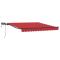 Auvent Rétractable Rouge 300 x 250 cm tissuCet auvent rétractable, c'est le combo idéal entre style et praticité, offrant une super solution d'ombrage pour tes espaces extérieurs. Avec ses lignes épurées et son look minimaliste, il est parfait pour les balcons ou les terrasses, créant un lieu idéal pour se détendre. Il est fait pour résister aux intempéries, et son mécanisme manuel robuste te permet de le dérouler ou de le ranger facilement en fonction de tes besoins en ombre. Parfait pour des moments chill ou une soirée tranquille dehors, il crée vraiment une super ambiance avec ses lumières intégrées. Matériaux Résistants aux Intempéries Fait en tissu résistant aux UV et à l'eau, cet auvent est assez solide pour résister à tous les types de temps. Il ne se décolorera pas au soleil, donc il garde son allure longtemps. Éclairage LED Intégré Avec des bandes LED flexibles, l'auvent éclaire ton extérieur, créant une atmosphère sympa après la nuit tombée. Parfait pour une soirée tranquille ou pour recevoir des amis. Mécanisme de Fonctionnement Manuel C'est simple à ajuster ; il suffit de le tirer ou de le ranger selon tes besoins. Pas de gadgets compliqués juste un ombrage flexible et facile. Attrait Esthétique Moderne Le design contemporain met l'accent sur la simplicité et la praticité. La finition en poudre apporte une touche de classe tout en le protégeant des intempéries. Entretien et Maintenance Faciles Le garder propre est super easy juste un coup de chiffon humide, pas de produits chimiques agressifs. Traite le tissu avec un spray imperméabilisant avant une forte pluie pour le garder encore plus longtemps. Danger ! Ressort fort lors de l'ouverture. Ne retirez pas cette corde si vous n'avez pas terminé toutes les étapes d'assemblage avec tous les boulons fixés et l'article fixé au mur ! Avertissement! Faire attention en desserrant les bras, car ils sont sous tension ! Un relâchement soudain du bras d'un auvent à bras articulés peut provoquer des blessures. Avertissement : Les instructions d'utilisation doivent être lues avant d'utiliser le produit. Avertissement: Le fonctionnement dans des conditions de gel peut endommager le produit. Utilisation externe dans les bâtiments et autres travaux de construction.