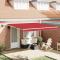 Auvent Rétractable Rouge 400 × 300 cm Tissu et acierCet auvent rétractable moderne est une super option pour un ombrage extérieur polyvalent. Avec ses lignes épurées et son style minimaliste, il ajoute une touche de modernité à n'importe quel jardin ou terrasse. Tu peux ajuster l'ombre facilement grâce à son mécanisme manuel qui permet d'ouvrir ou de fermer le tissu selon tes besoins, tandis que les bandes LED apportent une lumière douce parfaite pour les soirées entre amis. Forme rectangulaire: Le design rectangulaire de l'auvent offre une grande surface pour couvrir, parfait pour différents espaces extérieurs. Il trouve un bon équilibre entre style et fonction, s'intégrant parfaitement à tout type de jardin ou patio tout en fournissant de l'ombre. Mécanisme rétractable: Grâce à son mécanisme rétractable manuel, tu peux facilement gérer la quantité d'ombre. Utilise-le simplement à la main, et adapte-toi aux conditions météo changeantes pour ton confort, rendant son utilisation encore plus pratique. Lumières LED: Les bandes LED ajoutent une belle ambiance pour tes soirées en extérieur. Elles sont discrètes et offrent un éclairage économe en énergie, sans écraser l'environnement. Matériaux durables: Fait d'un tissu résistant aux UV et à l'eau, avec un cadre en acier solide, cet auvent est conçu pour résister aux différents climats. Ces matériaux garantissent qu'il dure longtemps, même exposé au soleil et à l'humidité. Assemblage facile: Il vient avec tout ce qu'il faut--tissu et cadre, l'assemblage est simple et se fait avec rapidité. Juste besoin de deux personnes et d'un tournevis pour l'installer facilement dans ton espace extérieur. Le mode d'emploi doit être lu avant le montage et l'utilisation du produit. Conservez ce manuel pour pouvoir vous y référer ultérieurement. Ce produit est destiné à être utilisé à l'extérieur et à l'intérieur comme protection solaire ou décoration uniquement. Ne l'utilisez jamais à d'autres fins et ne le modifiez pas. Ne l'utilisez pas dans des endroits soumis à des vibrations, à des impulsions ou à des températures élevées, comme les murs situés à proximité d'un four. Portez toujours un équipement de protection individuelle approprié lorsque vous montez et réglez le store. Il y a un risque de chute lors de travaux en hauteur, utilisez une protection anti-chute appropriée. Soyez prudent lors de l'installation, des risques d'écrasement et de cisaillement peuvent exister. N'enlevez PAS les bandes de sécurité. Ils ne peuvent être enlevés qu'une fois que toutes les étapes de l'assemblage sont terminées, que tous les boulons sont fixés et que l'article est fixé au mur. Des blessures graves peuvent résulter d'un retrait prématuré de l'emballage. Ce produit et ses pièces de fixation ne conviennent que pour une installation sur un mur en ciment ordinaire ou sur une maçonnerie stable et non enduite. Si le mur/la maçonnerie présente des fissures, vous devez consulter un professionnel. Si votre bâtiment possède une enveloppe extérieure (telle qu'une isolation, un double mur en briques ou un parement en briques), l'installation doit être effectuée par un professionnel. Ne l'installez jamais dans des endroits élevés et venteux, car le parasol pourrait tomber et blesser des personnes. N'installez pas le store si des pièces endommagées ou manquantes sont trouvées. Le store extérieur doit être rétracté si la vitesse du vent est supérieure à 28km/h. Avant d'ouvrir le store, assurez-vous que tous les supports sont solidement fixés aux montants du mur et que tous les boulons sont correctement serrés. FERMEZ TOUJOURS le store en cas de vent fort ou de bourrasque, de pluie et lorsqu'il n'est pas utilisé. Le non-respect de cette consigne peut entraîner des blessures corporelles et/ou des dommages matériels. De plus, les bras d'extension sont soumis à une forte tension et peuvent causer des dommages ou des blessures graves. Les enfants doivent être surveillés pour s'assurer qu'ils ne jouent pas avec l'appareil. N'utilisez pas l'appareil si une réparation ou un réglage est nécessaire. N'utilisez pas le store lorsque des travaux d'entretien, tels que le nettoyage des vitres, sont effectués à proximité. L'utilisation dans des conditions de gel peut endommager le store. Ne placez pas d'objets lourds sur l'armature, car ils pourraient tomber et causer des dommages. Des fixations trop serrées ou trop lâches peuvent endommager le produit ou être dangereuses pour les personnes. Attention : La toile ne doit pas être enfoncée pendant le fonctionnement, sinon l'eau s'y accumulera. Veuillez ne pas décoller et laver le tissu. Si vous devez remplacer le tissu, demandez l'aide d'experts. Faites attention lorsque vous actionnez le déverrouillage manuel alors que le store extérieur est rétracté, car il peut tomber rapidement si les ressorts sont faibles ou cassés.Danger ! Ressort fort lors de l'ouverture. Ne retirez pas cette corde si vous n'avez pas terminé toutes les étapes d'assemblage avec tous les boulons fixés et l'article fixé au mur ! Avertissement! Faire attention en desserrant les bras, car ils sont sous tension ! Un relâchement soudain du bras d'un auvent à bras articulés peut provoquer des blessures. Avertissement : Les instructions d'utilisation doivent être lues avant d'utiliser le produit. Avertissement: Le fonctionnement dans des conditions de gel peut endommager le produit. Utilisation externe dans les bâtiments et autres travaux de construction.