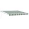 Auvent Rétractable Vert et blanc 350 x 250 cmCe store rétractable moderne offre une belle alliance de style et de fonctionnalité parfaite pour chaque espace extérieur. Avec son design épuré et ses lignes contemporaines, il complète super bien les maisons modernes, offrant une solution d'ombrage classe et pratique pour les jardins, terrasses et patios. Ses couleurs vertes et blanches attrayantes apportent un look frais et accueillant, parfait pour les repas en extérieur ou pour une sieste tranquille. Conçu avec à la fois simplicité et efficacité, il rend l'accès et l'utilisation hyper faciles, pour améliorer ton temps dehors. Matériaux premium : Fait en polyester robuste à 100 % avec des propriétés résistantes aux UV, ce store brûle le soleil sans perdre en qualité. Le tissu résiste bien à la décoloration, gardant sa belle couleur même après de nombreuses utilisations. Avec une structure en aluminium solide, il assure longévité et stabilité, même sous la pluie ou la chaleur, garantissant à tous un confort et une protection de qualité. Composants complets : Le kit comprend le cadre du store, le tissu et une télécommande, ce qui rend l'installation et l'utilisation super faciles. Le cadre forme une base solide pour le store, tandis que le tissu en polyester offre ombre et style. La télécommande permet d'ajuster les réglages à distance, pour une modernité et une comodité à portée de main. Fonctionnalités adaptables : Le mécanisme rétractable assure une flexibilité optimale, permettant d'ajuster selon les besoins. Cette fonction rend l'utilisation encore plus simple tout en augmentant la durée de vie du store en le protégeant lorsqu'il n'est pas en service. Parfait pour le temps variable, il offre une ombre instantanée ou une exposition selon tes envies, pour du confort et du contrôle. Usages polyvalents : Idéal pour agrémenter les jardins, terrasses et patios. Que ce soit pour des petits rassemblements ou des instants de calme, ce store crée l'environnement parfait. Il allie style et praticité, donc c'est parfait pour les personnes cherchant à améliorer leur espace extérieur avec une solution d'ombre attrayante. Entretien pratique : Ce store demande peu d'entretien, car il a été conçu pour faciliter la vie. Un simple coup d'éponge avec de l'eau suffit pour le nettoyer, maintenant son apparence fraîche pour ton plaisir. Ça signifie que tu as plus de temps pour profiter de ton espace au lieu de passer ton temps à faire du ménage. Cette fonctionnalité rend l'utilisation encore plus agréable, assurant une satisfaction sur le long terme. Danger ! Ressort fort lors de l'ouverture. Ne retirez pas cette corde si vous n'avez pas terminé toutes les étapes d'assemblage avec tous les boulons fixés et l'article fixé au mur ! Avertissement! Faire attention en desserrant les bras, car ils sont sous tension ! Un relâchement soudain du bras d'un auvent à bras articulés peut provoquer des blessures. Avertissement : Les instructions d'utilisation doivent être lues avant d'utiliser le produit. Avertissement: Le fonctionnement dans des conditions de gel peut endommager le produit. Utilisation externe dans les bâtiments et autres travaux de construction. Ne laissez pas les enfants jouer avec le dispositif de commande du store. Gardez la télécommande hors de portée des enfants.
