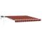 Auvent Rétractable orange et marron 300 x 250 cm Tissu et acierCet auvent rétractable moderne est une super option pour un ombrage extérieur polyvalent. Avec ses lignes épurées et son style minimaliste, il ajoute une touche de modernité à n'importe quel jardin ou terrasse. Tu peux ajuster l'ombre facilement grâce à son mécanisme manuel qui permet d'ouvrir ou de fermer le tissu selon tes besoins, tandis que les bandes LED apportent une lumière douce parfaite pour les soirées entre amis. Forme rectangulaire: Le design rectangulaire de l'auvent offre une grande surface pour couvrir, parfait pour différents espaces extérieurs. Il trouve un bon équilibre entre style et fonction, s'intégrant parfaitement à tout type de jardin ou patio tout en fournissant de l'ombre. Mécanisme rétractable: Grâce à son mécanisme rétractable manuel, tu peux facilement gérer la quantité d'ombre. Utilise-le simplement à la main, et adapte-toi aux conditions météo changeantes pour ton confort, rendant son utilisation encore plus pratique. Lumières LED: Les bandes LED ajoutent une belle ambiance pour tes soirées en extérieur. Elles sont discrètes et offrent un éclairage économe en énergie, sans écraser l'environnement. Matériaux durables: Fait d'un tissu résistant aux UV et à l'eau, avec un cadre en acier solide, cet auvent est conçu pour résister aux différents climats. Ces matériaux garantissent qu'il dure longtemps, même exposé au soleil et à l'humidité. Assemblage facile: Il vient avec tout ce qu'il faut--tissu et cadre, l'assemblage est simple et se fait avec rapidité. Juste besoin de deux personnes et d'un tournevis pour l'installer facilement dans ton espace extérieur. Danger ! Ressort fort lors de l'ouverture. Ne retirez pas cette corde si vous n'avez pas terminé toutes les étapes d'assemblage avec tous les boulons fixés et l'article fixé au mur ! Avertissement! Faire attention en desserrant les bras, car ils sont sous tension ! Un relâchement soudain du bras d'un auvent à bras articulés peut provoquer des blessures. Avertissement : Les instructions d'utilisation doivent être lues avant d'utiliser le produit. Avertissement: Le fonctionnement dans des conditions de gel peut endommager le produit. Utilisation externe dans les bâtiments et autres travaux de construction.