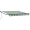 Auvent Vert et blanc 300 x 250 x 165 cm PolyesterCe store rétractable, c'est la solution parfaite pour de l'ombre qui combine style et fonctionnalité pour votre extérieur. Que vous soyez sur une terrasse ensoleillée ou dans un jardin, il crée une ambiance sympa et accueillante pour profiter des belles journées. Le combo de couleurs vertes et blanches se marie avec tous les décors extérieurs, apportant une vibe fraîche et invitante. Hyper réglable, il mélange lumière et ombre à la perfection, s'adapte à vos goûts et aux conditions climatiques, et booste le look de votre patio ou jardin. Tissu en polyester résistant aux UV Ce store est fabriqué avec un polyester de qualité qui résiste bien aux rayons UV, donc il dure plus longtemps et garde une belle apparence même après des étés intenses. Une solution fiable pour se protéger du soleil. Design rétractable Avec sa fonction rétractable, ce store s'étend et se rétracte facilement, adapté à vos besoins en ombre. Parfait pour s'ajuster aux différents temps et préférences, il rend chaque moment à l'extérieur plus agréable. Installation simple L'installation est claire, il suffit de deux personnes et d'un tournevis. Vous pourrez profiter rapidement de votre nouvel espace extérieur en toute sécurité, et il est stable pour une utilisation durable. Esthétique moderne Le design minimaliste de ce store ajoute du style à votre extérieur. Ses lignes élégantes et le mélange des couleurs vertes et blanches s'accordent avec beaucoup de styles de jardin, parfaite pour rendre votre maison plus jolie. Essentiel d'été Conçu spécifiquement pour l'extérieur, ce store rétractable est parfait pour l'été. Son tissu robuste et son cadre assurent une bonne protection quand il fait chaud, vous permettant de profiter de tous vos espaces extérieurs à l'ombre. Danger ! Ressort fort lors de l'ouverture. Ne retirez pas cette corde si vous n'avez pas terminé toutes les étapes d'assemblage avec tous les boulons fixés et l'article fixé au mur ! Avertissement! Faire attention en desserrant les bras, car ils sont sous tension ! Un relâchement soudain du bras d'un auvent à bras articulés peut provoquer des blessures. Avertissement : Les instructions d'utilisation doivent être lues avant d'utiliser le produit. Avertissement: Le fonctionnement dans des conditions de gel peut endommager le produit. Utilisation externe dans les bâtiments et autres travaux de construction. Ne laissez pas les enfants jouer avec le dispositif de commande du store. Gardez la télécommande hors de portée des enfants.
