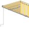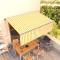 Auvent automatique rétractable avec store 4x3 m Jaune et blanc Créez un endroit agréable et frais dans vos espaces extérieurs avec cet auvent rétractable ! Cet auvent d'extérieur est construit avec un cadre en aluminium enduit de poudre résistant à la rouille, ce qui le rend léger mais robuste. Le tissu de l'auvent de patio est en polyester haute densité avec revêtement en PU, résistant aux UV et à l'eau. De plus, l'angle et la hauteur peuvent être réglés selon vos préférences. Vous pouvez facilement ouvrir et rétracter le store rétractable automatique avec la télécommande incluse. De plus, la longue manivelle permet de contrôler le store en douceur. Le store vous protège des rayons UV et offre une protection de l'intimité. Cet appareil peut être utilisé par des enfants âgés de 8 ans et plus et par des personnes dont les capacités physiques, sensorielles ou mentales sont réduites ou qui manquent d'expérience et de connaissances, à condition qu'ils aient reçu une surveillance ou des instructions concernant l'utilisation de l'appareil en toute sécurité et qu'ils comprennent les risques encourus. Les enfants ne doivent pas jouer avec l'appareil. Le nettoyage et l'entretien ne doivent pas être effectués par des enfants sans surveillance. Si le cordon d'alimentation est endommagé, il doit être remplacé par le fabricant, son agent de service ou des personnes de qualification similaire afin d'éviter tout danger. AVERTISSEMENT : Consignes de sécurité importantes. Il est important pour la sécurité des personnes de suivre ces instructions. Conservez ces instructions. AVERTISSEMENT : Instructions de sécurité importantes. Suivez toutes les instructions car une installation incorrecte peut entraîner des blessures graves, voire mortelles. Ne laissez pas les enfants jouer avec le dispositif de contrôle. Gardez la télécommande hors de portée des enfants. Ne pas faire fonctionner le store lorsque des travaux d'entretien, tels que le nettoyage des vitres, sont effectués à proximité. Les parties mobiles de l'entraînement doivent être installées à plus de 2,5 m au-dessus du sol ou d'un autre niveau permettant d'y accéder. Avant d'installer le variateur, retirez tous les cordons inutiles et désactivez tous les équipements qui ne sont pas nécessaires au fonctionnement sous tension. L'organe de commande d'un interrupteur à rappel automatique doit être situé en vue directe de la pièce commandée, mais à l'écart des pièces mobiles. Il doit être installé à une hauteur minimale de 1,5 m.Danger ! Ressort fort lors de l'ouverture. Ne retirez pas cette corde si vous n'avez pas terminé toutes les étapes d'assemblage avec tous les boulons fixés et l'article fixé au mur ! Avertissement! Faire attention en desserrant les bras, car ils sont sous tension ! Un relâchement soudain du bras d'un auvent à bras articulés peut provoquer des blessures. Avertissement : Les instructions d'utilisation doivent être lues avant d'utiliser le produit. Avertissement: Le fonctionnement dans des conditions de gel peut endommager le produit. Utilisation externe dans les bâtiments et autres travaux de construction. Les parties mobiles dangereuses non protégées de l'entraînement doivent être installées à plus de 2,5 m au-dessus du sol ou à d'autres niveaux pouvant en empêcher l'accès. GPSR