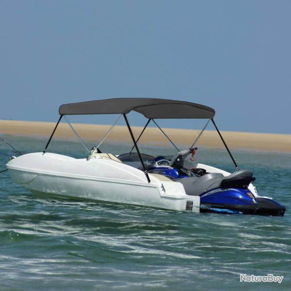 Auvent bimini à 2 arceaux Anthracite 180x130x110 cmCet auvent bimini de qualité a un design de cadre à 2 arceaux, jouant un rôle efficace pour vous protéger des rayons directs du soleil et des conditions météorologiques difficiles telles que la grêle ou la pluie. D'une hauteur de 110 cm, cet auvent de bateau peut être réglé de 125 à 135 cm de largeur, vous offrant un très grand espace tout en profitant de vos expériences de navigation. Fabriqué en 100 % polyester avec revêtement PU, il est résistant aux UV, à l'eau et durable pendant des années de service. Le cadre en aluminium anodisé ajoute à sa stabilité. Les crochets à oeil, les écrous de montage et les boutons sont fabriqués en acier inoxydable 316 de qualité marine, qui est anticorrosion et qui est particulièrement adapté à une utilisation à long terme. Remarque importante : veuillez utiliser la botte pour protéger le tissu lorsque vous n'utilisez pas le toit bimini et plier l'auvent lorsque la vitesse du navire dépasse 25 m/h.