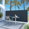 Auvent latéral rétractable 140 x 300 cm NoirNotre auvent de jardin, doté d'un grand écran, est un moyen efficace de se protéger du vent constant et du soleil bas tout en assurant votre intimité. La conception simple mais élégante en fait un complément idéal pour votre jardin, terrasse, balcon, etc. Notre store latéral rétractable est doté d'une fonction d'enroulement automatique et sa largeur est réglable jusqu'à 300 cm. L'écran d'extérieur est en polyester résistant aux UV, à la déchirure et à l'eau. La livraison comprend également les accessoires de montage. Attention : Risque de blessure ! Lors de la réparation, de la modification, du démontage et de l'élimination du système d'ombrage, les pièces sous tension (p. ex. les bras articulés, les systèmes de contre-tension) doivent être complètement détendues ou sécurisées au préalable. Pour ce faire, il convient de faire appel à un spécialiste ! N'utilisez pas le store s'il est endommagé et doit être réparé ou ajusté. L'auvent latéral doit être rentré si la vitesse du vent est supérieure à 28 km/h. L'auvent latéral doit être rentré en cas de conditions météorologiques défavorables, telles que de fortes pluies ou de la neige. L'utilisation dans des conditions de gel peut endommager le produit. Attention : Risque d'incendie ! N'utilisez pas de barbecues, de chauffages, d'appareils de cuisson ou de bougies à proximité de l'auvent. Attention lors de l'installation, des risques d'écrasement et de cisaillement peuvent exister. Attention aux doigts lors de l'installation.
